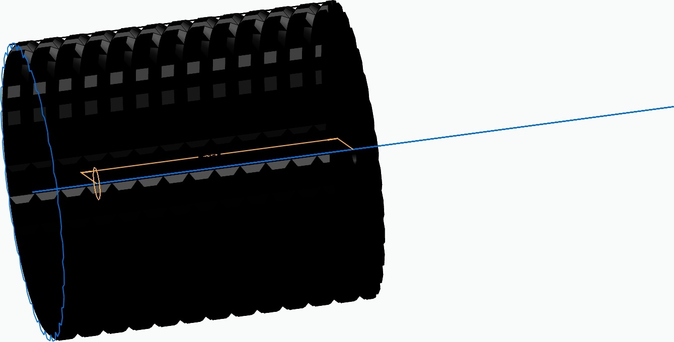 Crear una perilla de potenciómetro con un diámetro de 60 mm y una altura de 57 mm y un diámetro de orificio de 8 mm en material plata y tipo de superficie ranurada con 2 mm de profundidad. |
