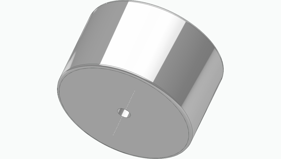 Utwórz srebrną gałkę do potencjometru grawerowaną o wielkości elementu 3 mm otwór w gałce zrób na 5,8 mm średnica gałki daj na 4 cm wysokość gałki też 4 cm Comment : Print out |
