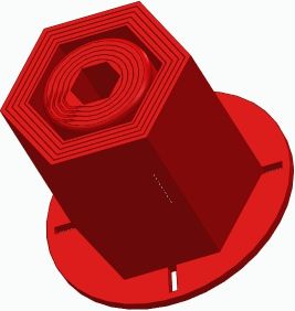 create red screw knob 6cm big and small diameter, 5 number o chamber, fillet radius 5mm, screw diameter 12mm, screw head size 19mm, screw head height 8mm, printing tollerance 0,2mm, screw length 45mm. Comment : Pront out |