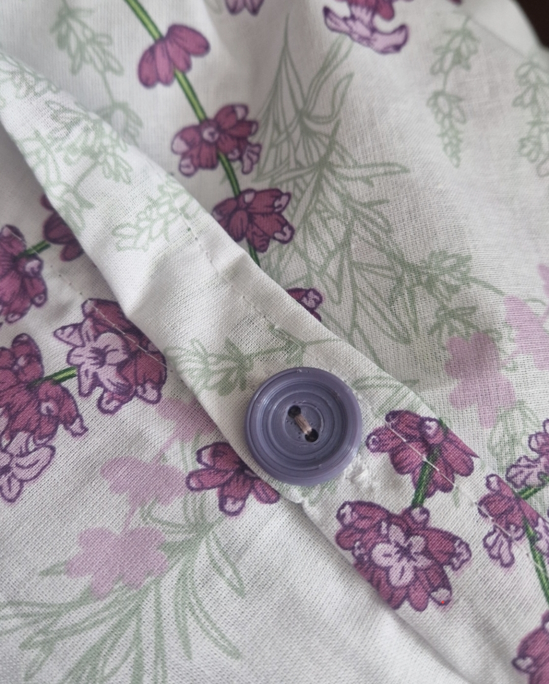Фиолетовая пуговица с двумя дырками